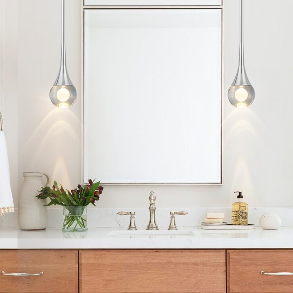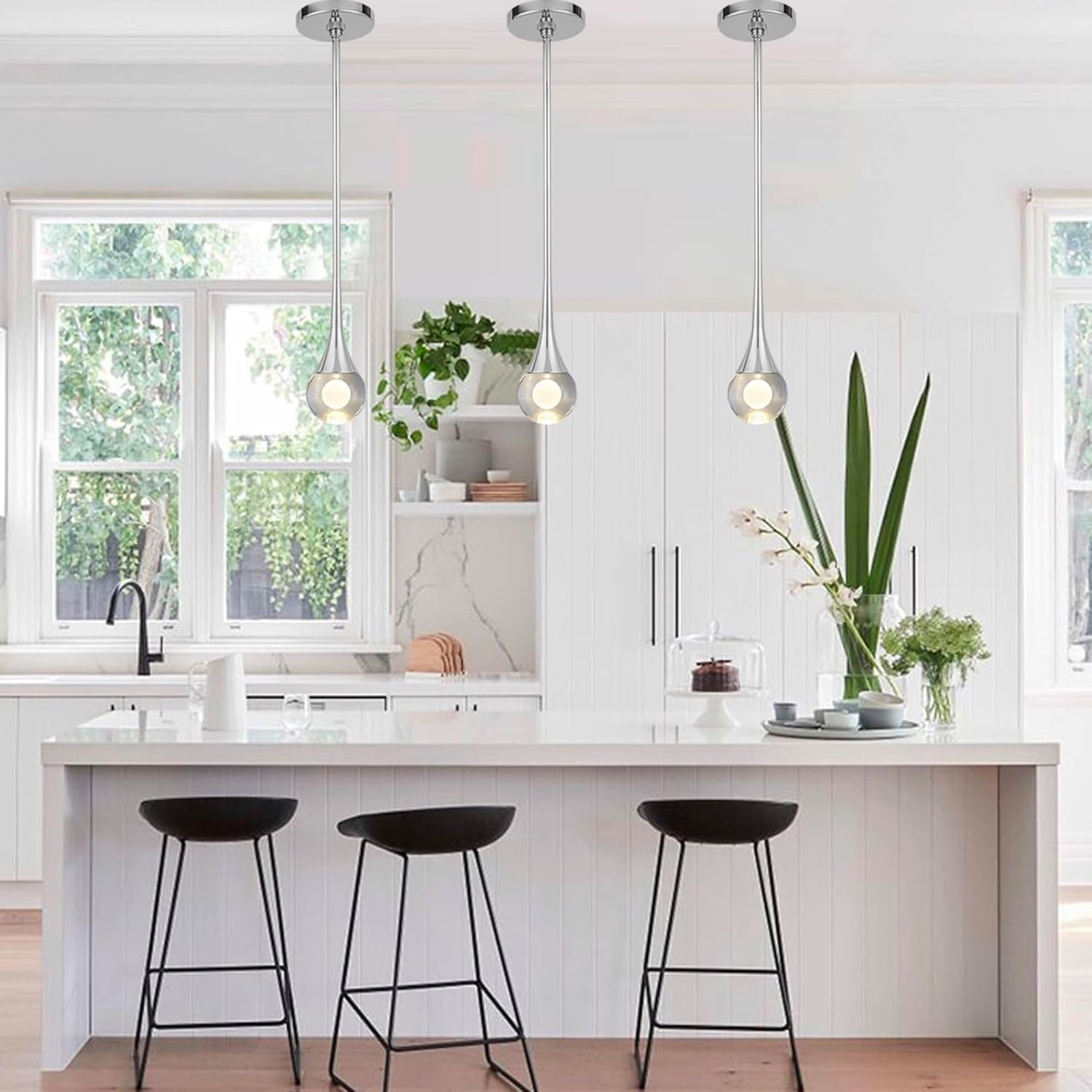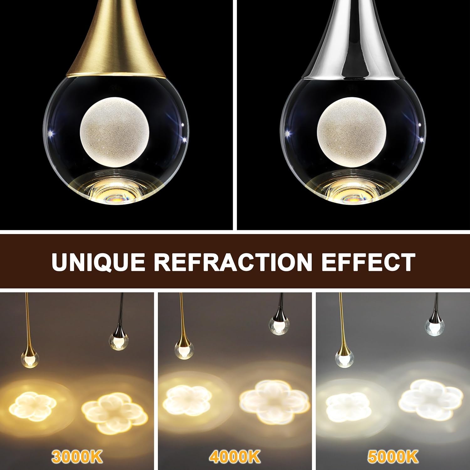 - UNIQUE SPHERIC DESIGN - This pendant lights kitchen island features a modern silver finish with clear solid K9 mini sphere crystals. Each crystal pendant is individually cut and hand polished with a high powered laser to create a stunning 3D design moon shape. It brings timeless beauty and a unique look to the fixture.