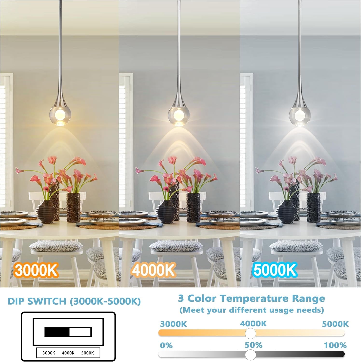- 8W DIMMABLE 3 COLOR TEMPERATURE LED - The pendant lights comes with 8W integrated LED, which are as bright as a 40W bulb but use only 8W of energy. The ceiling plate is equipped with a color temperature adjustment dial that allows you to quickly adjust the color temperature change to meet your different usage needs: 3000k Warm Yellow, 4000k Neutral White and 5000k Cool White. The light can also be dimmed using the dimmer (not included).