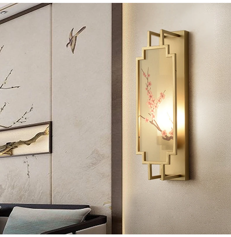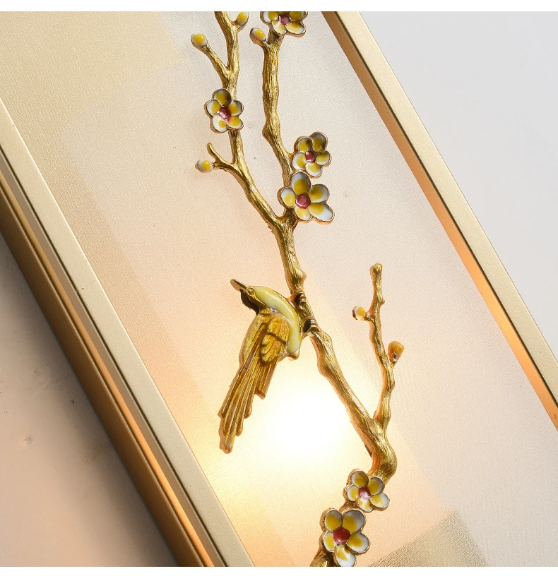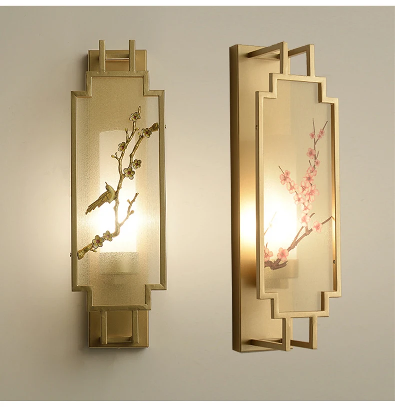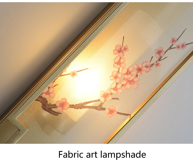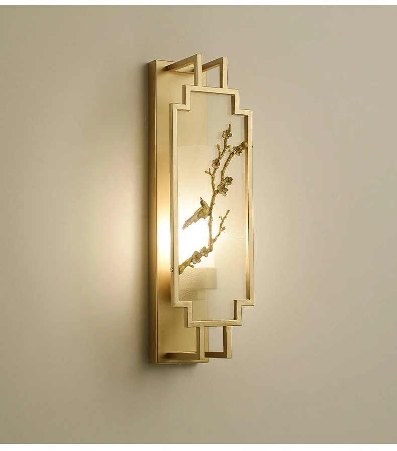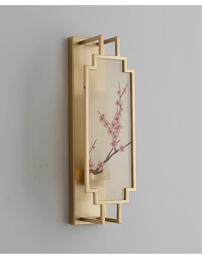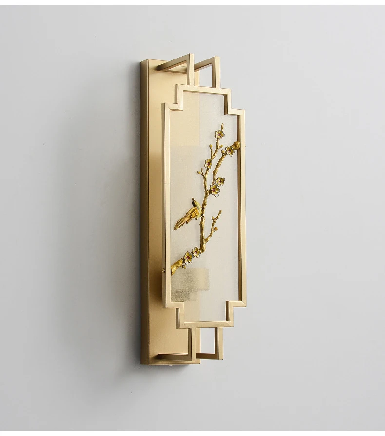 Chinese Zen Style Rectangular Wall Lamp Iron Living Room Tv Background Wall Lamp Bedroom Corridor Decoration Flower Bird Lamp