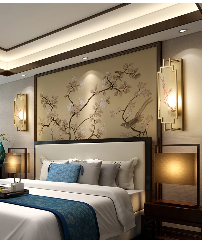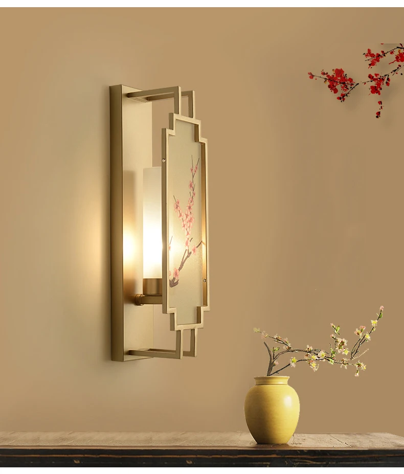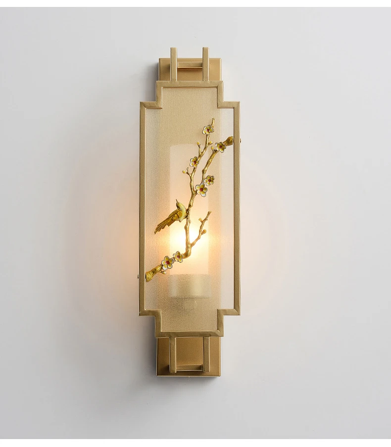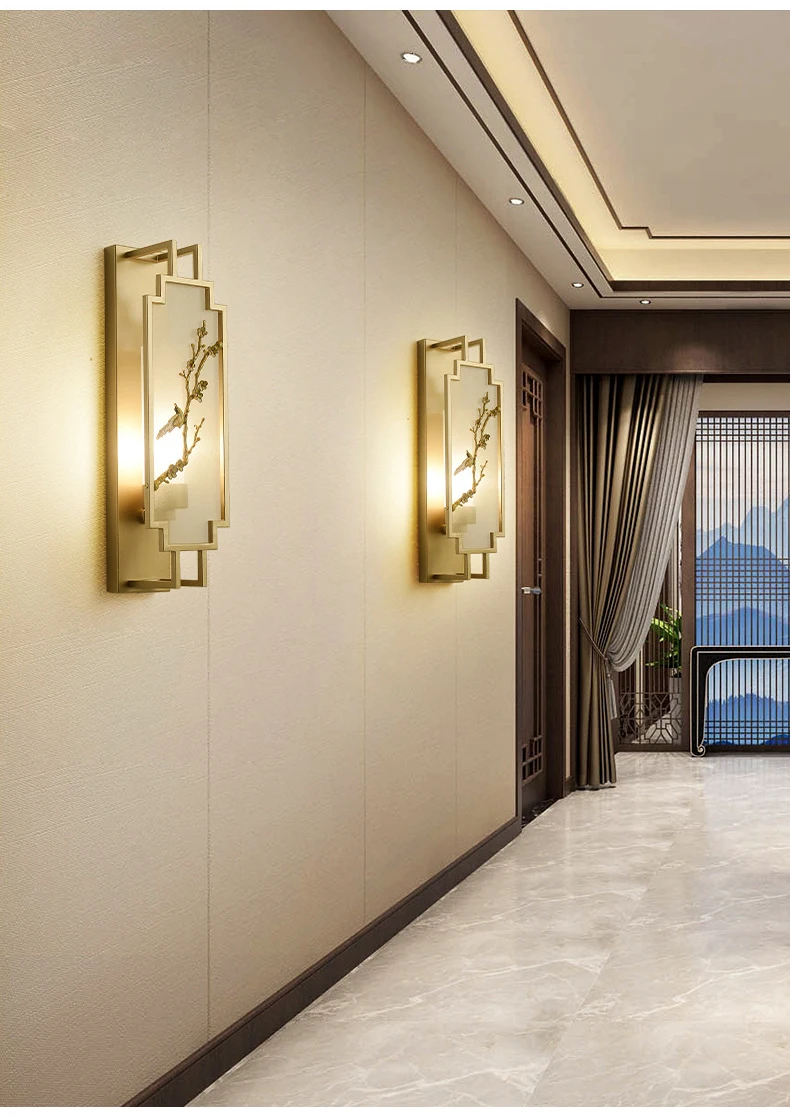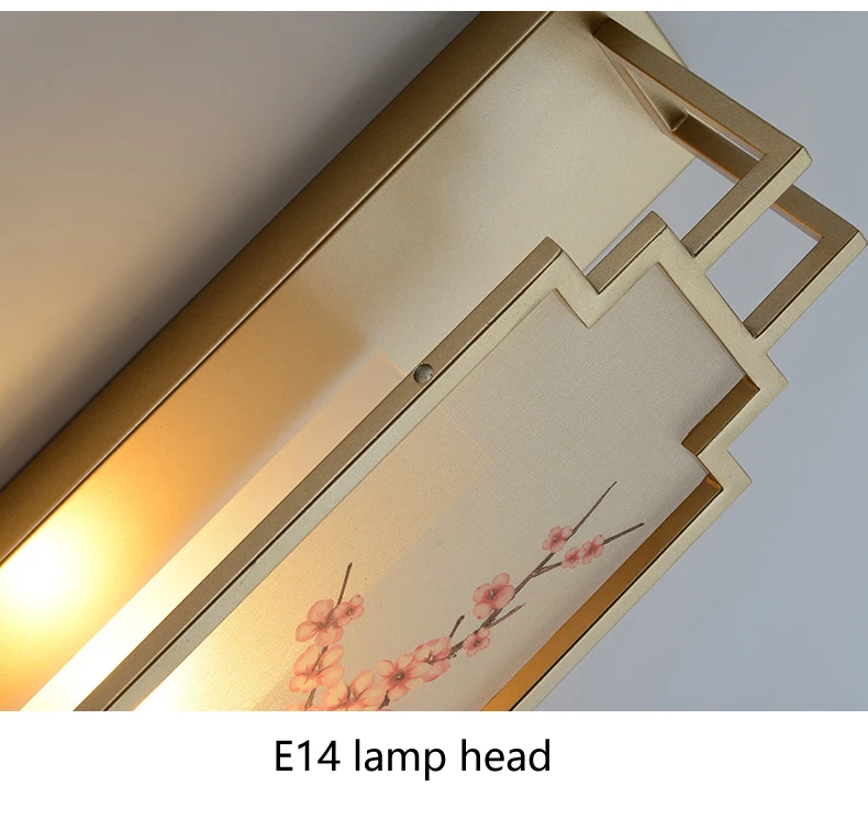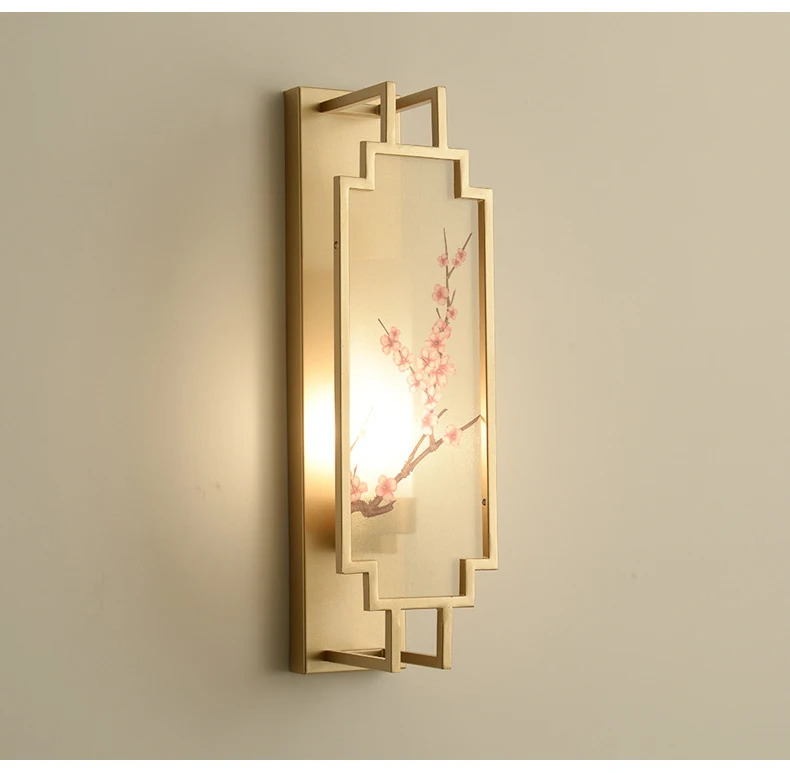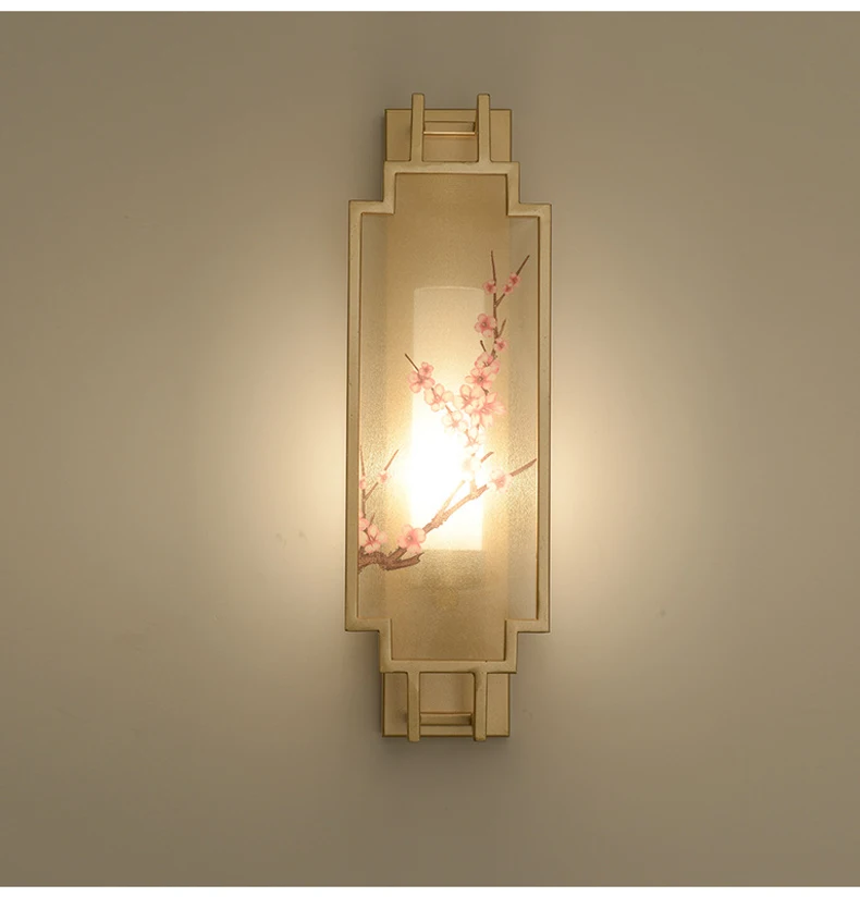 Chinese Zen Style Rectangular Wall Lamp Iron Living Room Tv Background Wall Lamp Bedroom Corridor Decoration Flower Bird Lamp