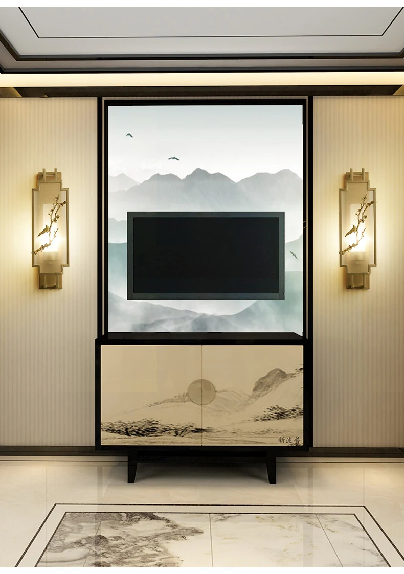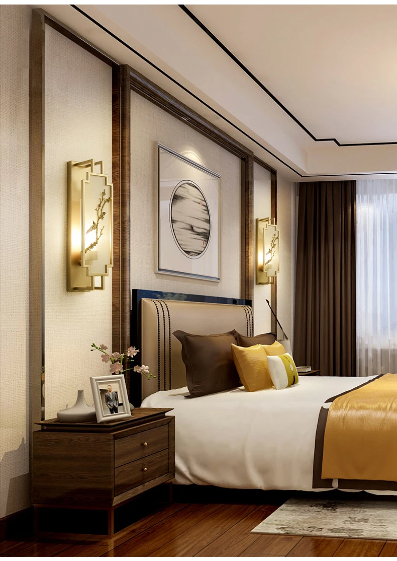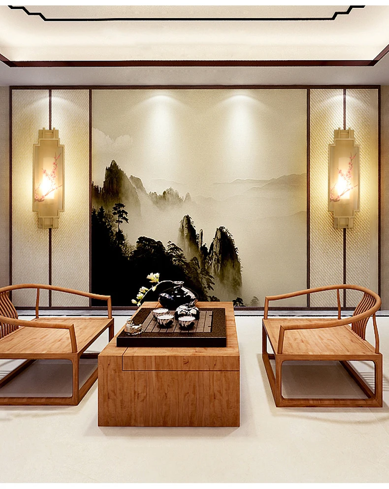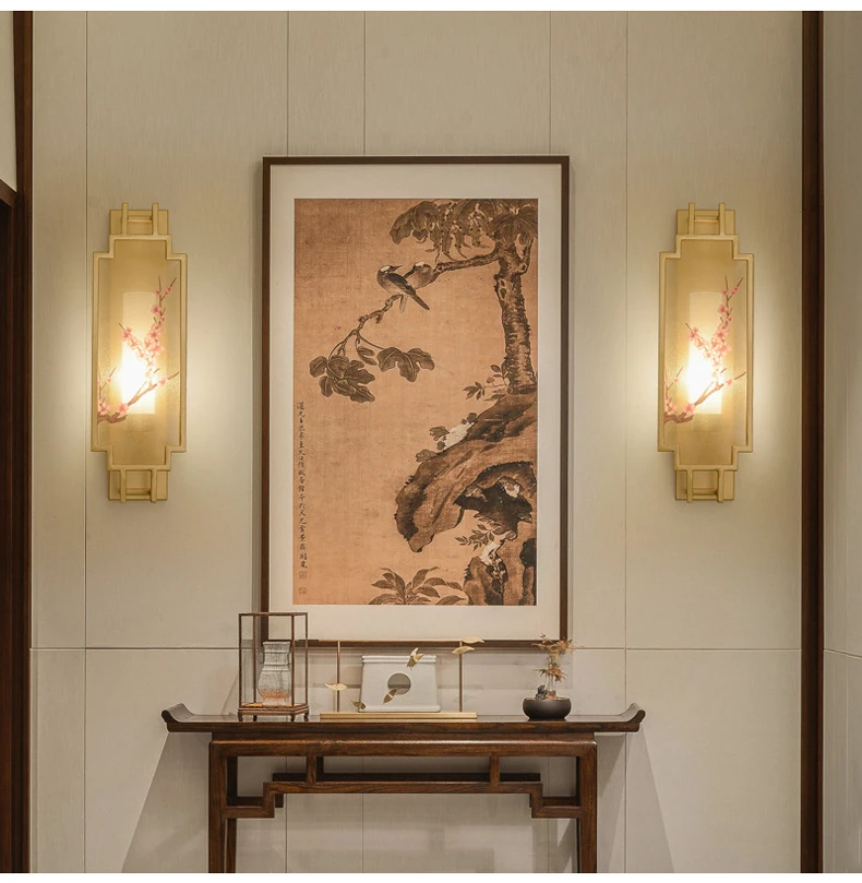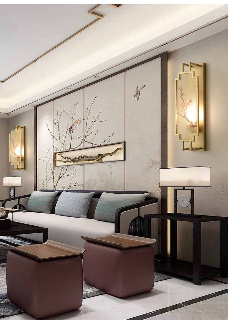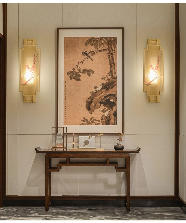 Chinese Zen Style Rectangular Wall Lamp Iron Living Room Tv Background Wall Lamp Bedroom Corridor Decoration Flower Bird Lamp