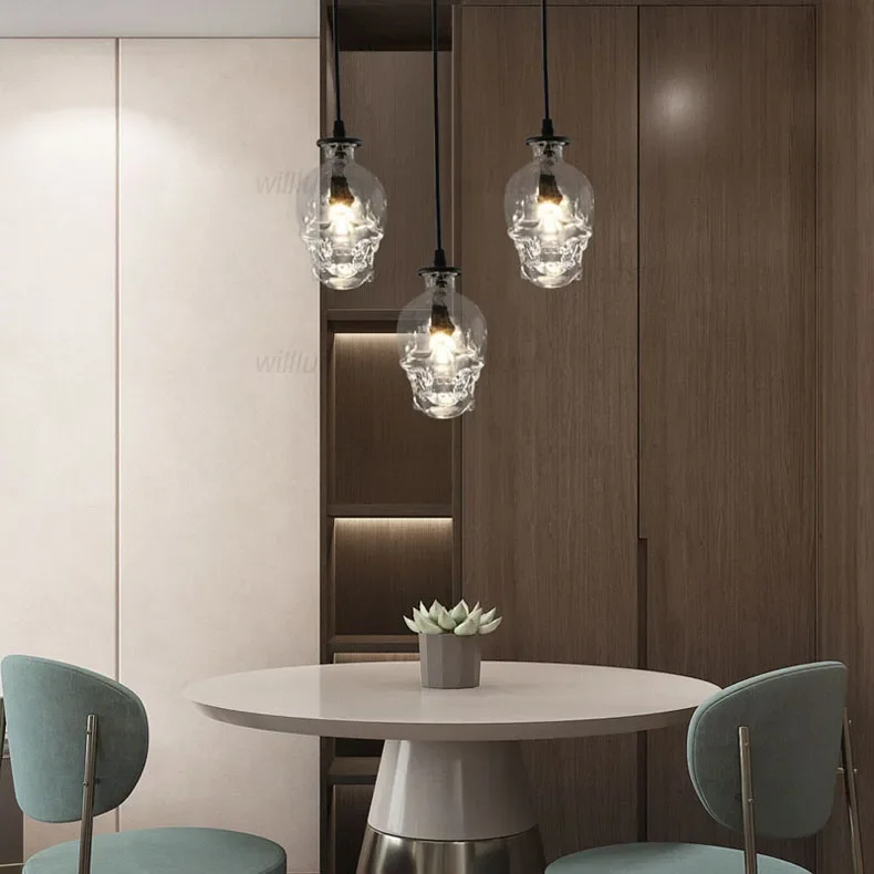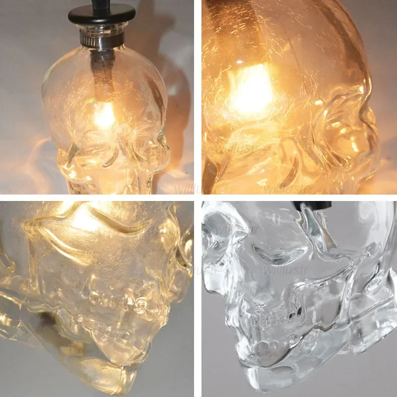 Creative Clear Glass Skull Pendant Lamp Retro Suspension Light Wall Sconce Hotel Cafe Bar Loft Hanging Ceiling Chandelier