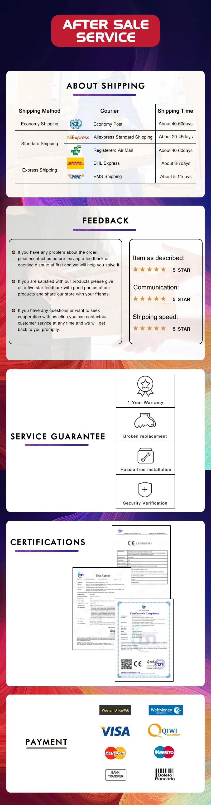 Orders can be returned or exchanged within 30 days of receiving the parcel, providing they are in original resalable condition.